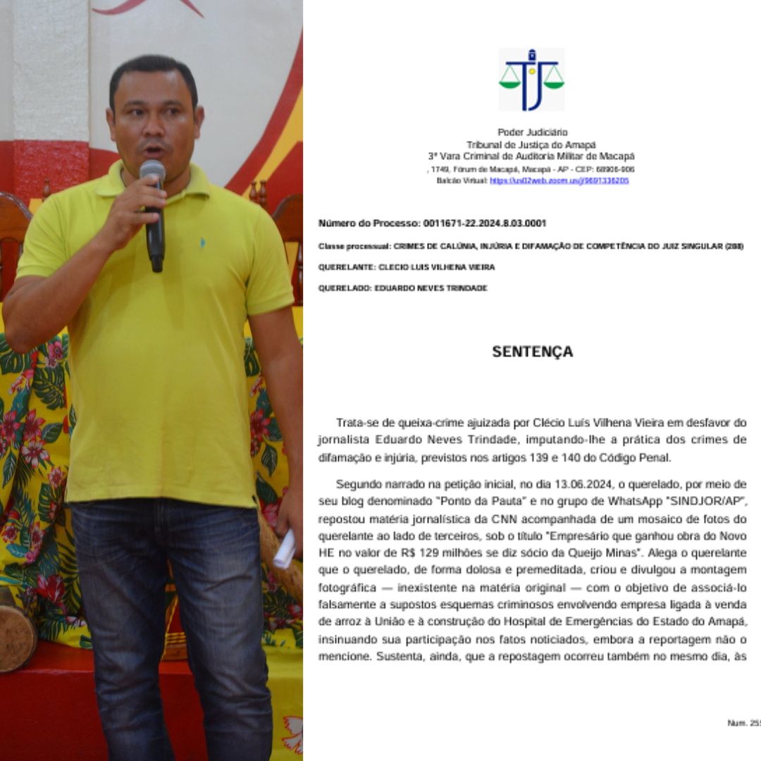 A Justiça do Amapá condenou o radialista e comunicador Eduardo Neves Trindade pelos crimes de